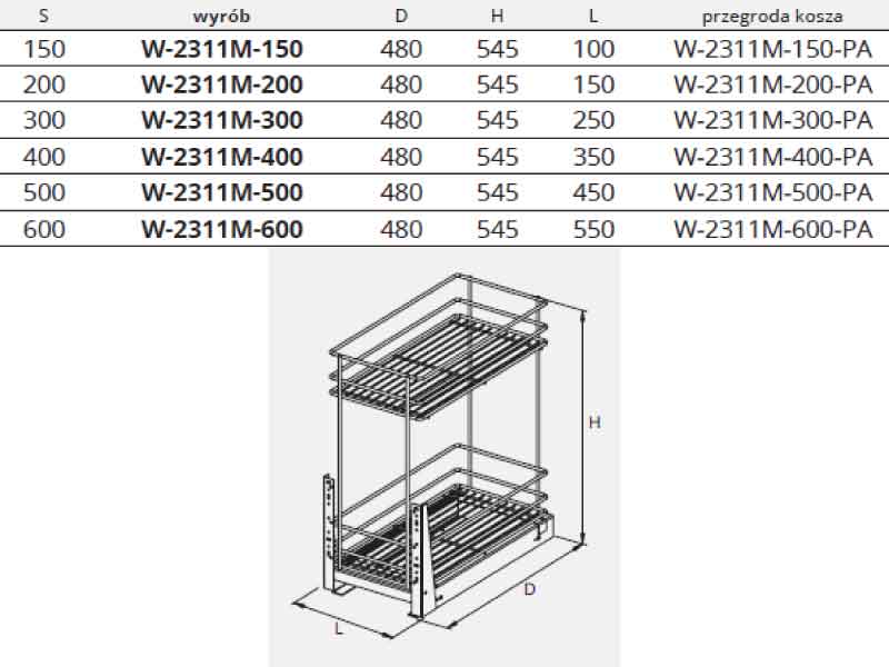 Wysokie przegrody zapewniają stabilność produktów umieszczonych w koszu, bezpieczeństwo przed przewróceniem się i rozbiciem. Samodociąg z hamulcem gwarantuje ciche domykanie. Funkcja pełnego wysuwu zapewni Ci szeroki dostęp do przechowywanych produktów.