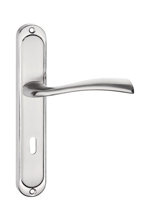 Klamka drzwiowa LIBRA długi szyld, 90mm na KLUCZ, nikiel szczotkowany