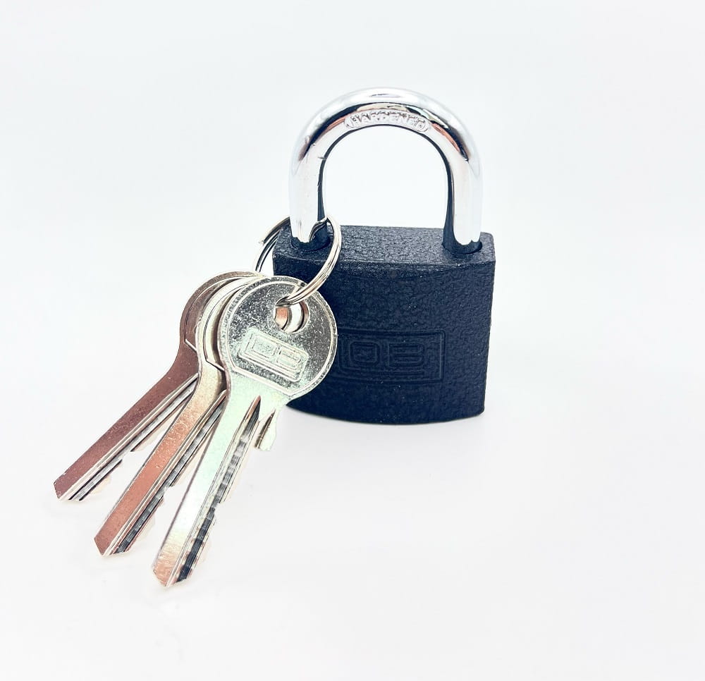 Kłódka żeliwna LOB KSS-40mm zatrzaskowa. W zestawie z kłódką trzy klucze.