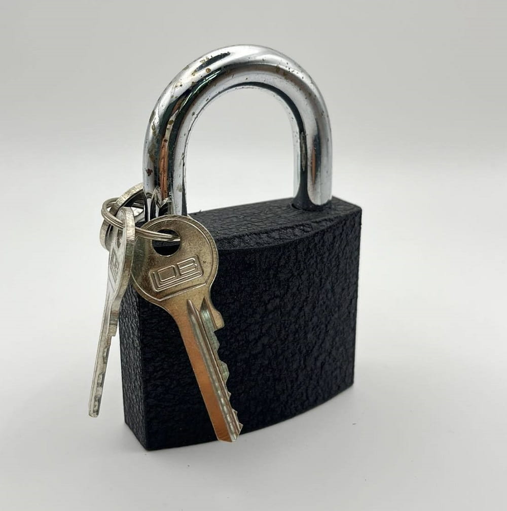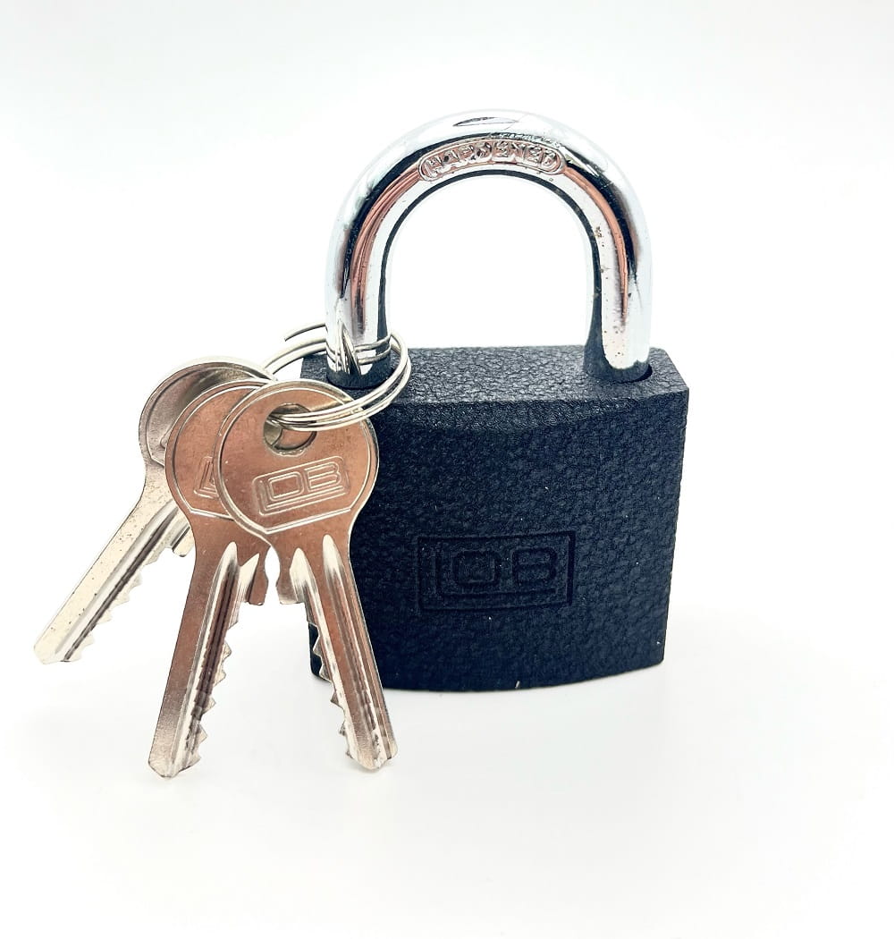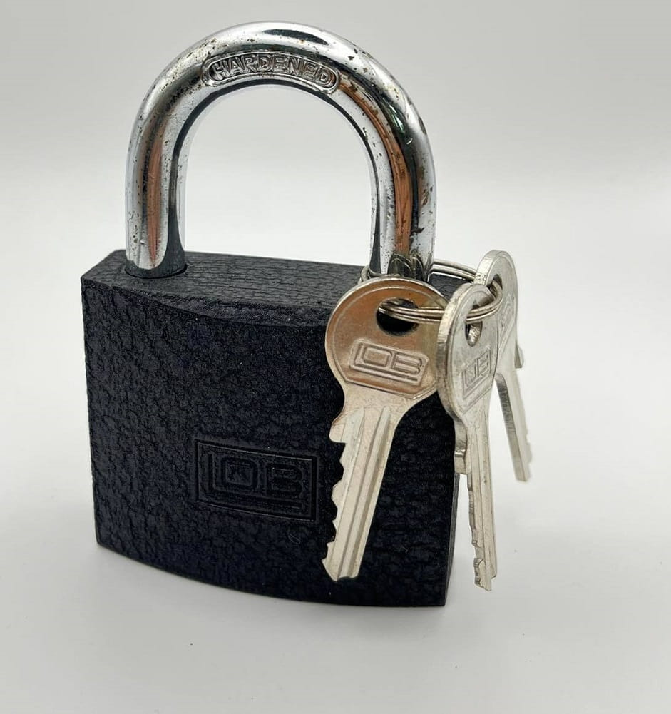 Kłódka żeliwna LOB KSS-60mm zatrzaskowa. W zestawie z kłódką trzy klucze.