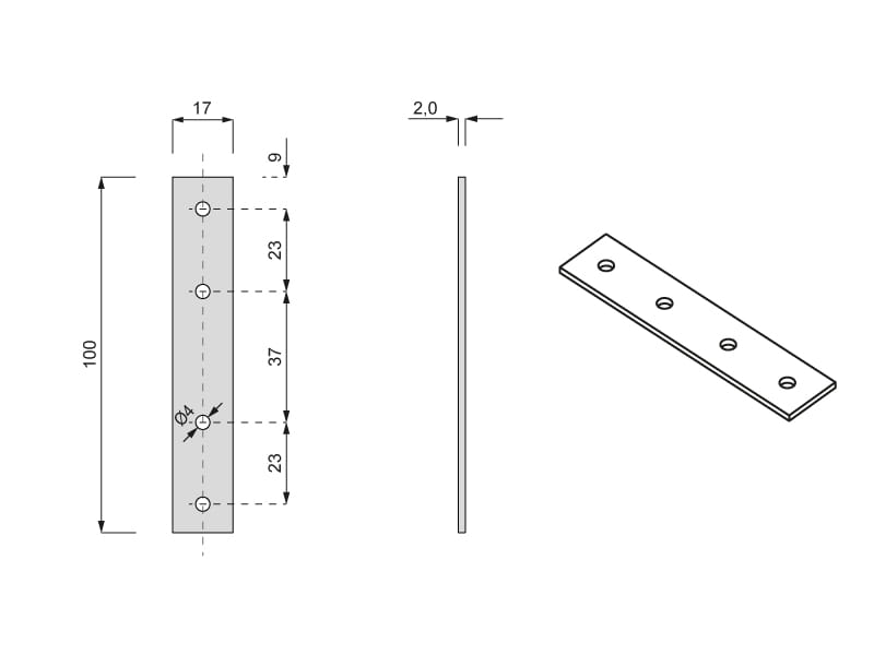 Łącznik płaski metalowy 100x17mm, ocynk srebrny.