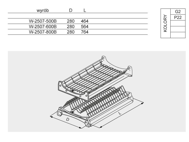 Ociekarka z podp.met.(N) L-800 (LUX-->2tacki) W-2507-800B CHROM G2