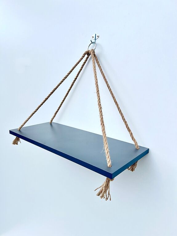 Każda półka powstaje z dbałością o najmniejszy szczegół – z grubej płyty laminowanej 18mm, pokrytej wytrzymałą okleiną. Sznurki z naturalnej liny jutowej