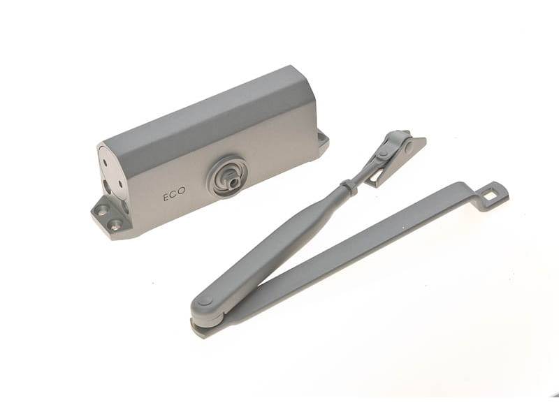 Samozamykacz drzwiowy może być zamontowany po stronie zawiasów lub po przeciwnej do zawiasów. W komplecie ramię standardowe.