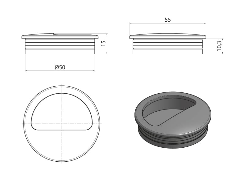 Uchwyt wpuszczany - muszelka plastikowa. Klasyczny, okrągły kształt uchwytu pozwala dopasować go do większości obowiązujących stylów.