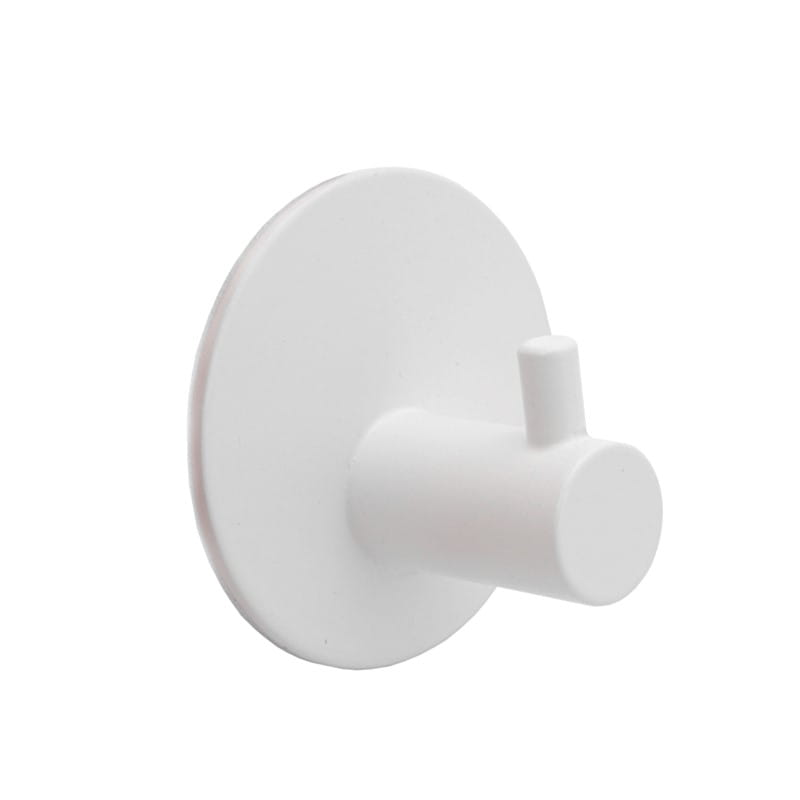 Praktyczny wieszak do kuchni, łazienki lub przedpokoju. Montaż bez wiercenia – wystarczy odkleić i przykleić. Wykonany ze stali, pokrytej trwałym białym lakierem proszkowym. Okrągła płytka o średnicy 45 mm zapewnia estetykę i trwałość.