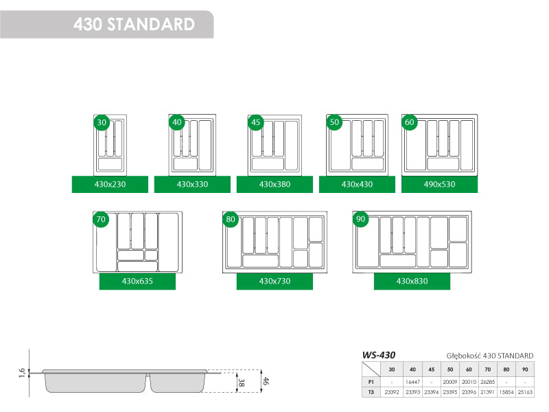Wkład do szuflady 60/430 STANDARD WS-430 1,6 T1 biały