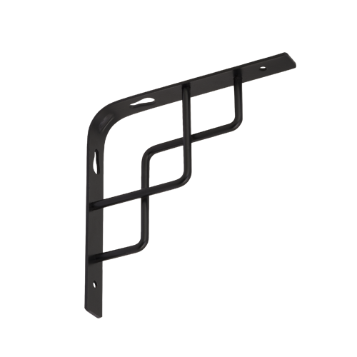 Stalowe wsporniki do półek z ornamentem w kształcie zygzaka. Przykuwają uwagę dzięki swojej geometrycznej formie. Pasują pod półki wykonane z każdego rodzaju drewna.