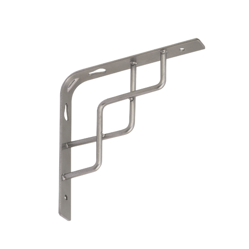 Stalowe wsporniki do półek z ornamentem w kształcie zygzaka. Przykuwają uwagę dzięki swojej geometrycznej formie. Pasują pod półki wykonane z każdego rodzaju drewna.