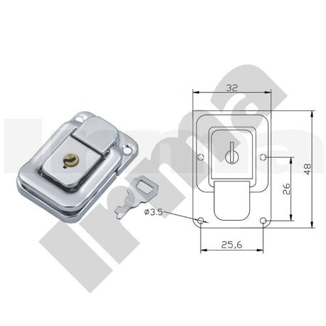 Zamek do skrzyń, walizek i kaset na klucz 48x32mm CHROM