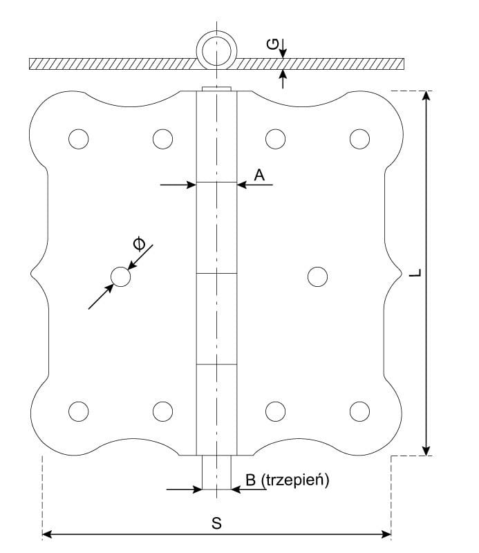 Zawias budowlany ozdobny idealnie nada się do Twoich drzwi, okien, ogrodzenia, furtki, bramy czy wejścia do piwnicy.