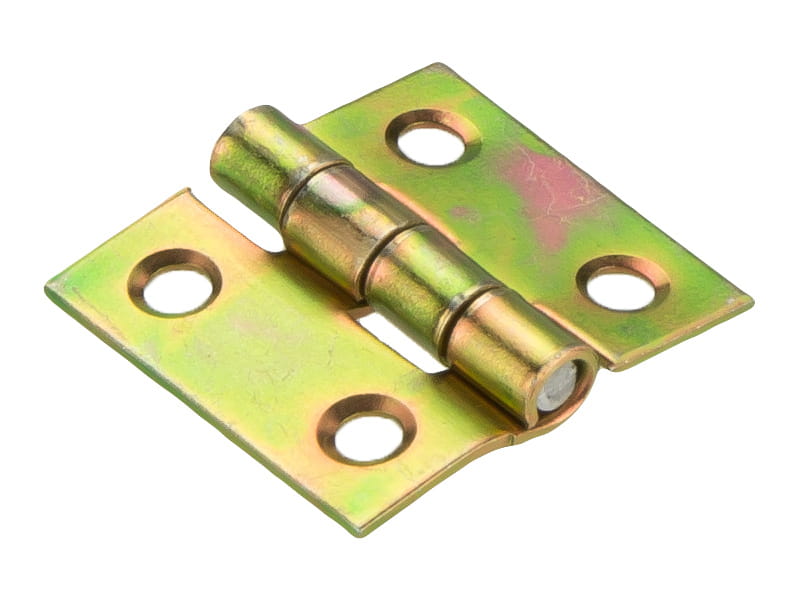 Zawias splatany; rozmiar: 20mm, ocynk żółty. Stosuje się go w meblarstwie, przy montażu drzwiczek, zamknięć do skrzyń oraz puf, a także przy drobnych konstrukcjach z drewna.