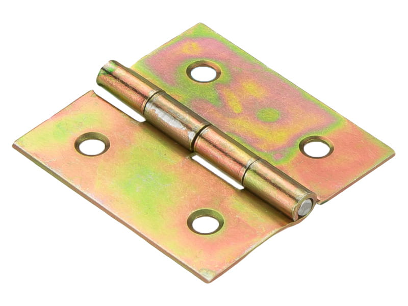 Zawias splatany; rozmiar: 35mm, ocynk żółty. Stosuje się go w meblarstwie, przy montażu drzwiczek, zamknięć do skrzyń oraz puf, a także przy drobnych konstrukcjach z drewna.