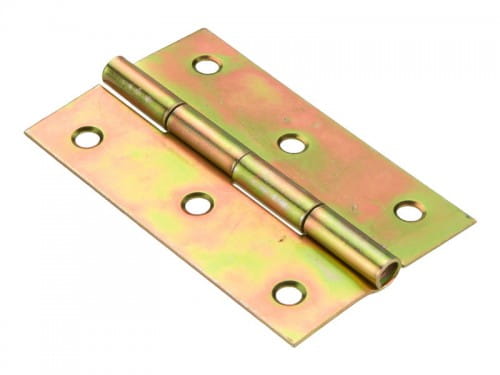 Zawias splatany; rozmiar: 70mm, ocynk żółty. Stosuje się go w meblarstwie, przy montażu drzwiczek, zamknięć do skrzyń oraz puf, a także przy drobnych konstrukcjach z drewna.