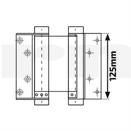 Zawiasy do drzwi wahadłowych. Wykończenie niklowane, chromowane, mosiądzowane, zastosowanie tylko do wewnątrz budynków. Na zamówienie dostarczamy zawiasy ze stali nierdzewnej, przystosowane do pracy w każdych warunkach.